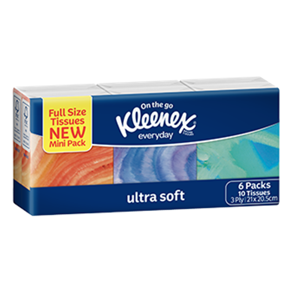 • It's easy to take the soft and gentle touch of Kleenex Facial Tissues anywhere with our Pocket Packs. Slip them in your bag for whenever