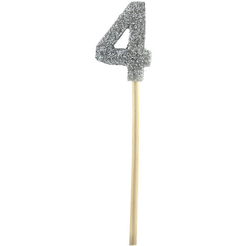 Alpen Candle Long Stick Glitter No. 4 Silver