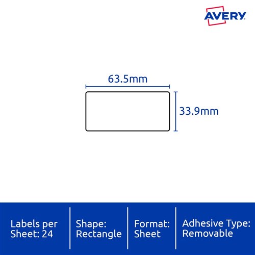 • Size: 63.5x33.9mm 480 labels, 20 sheets. 24 labels per sheet (24UP).