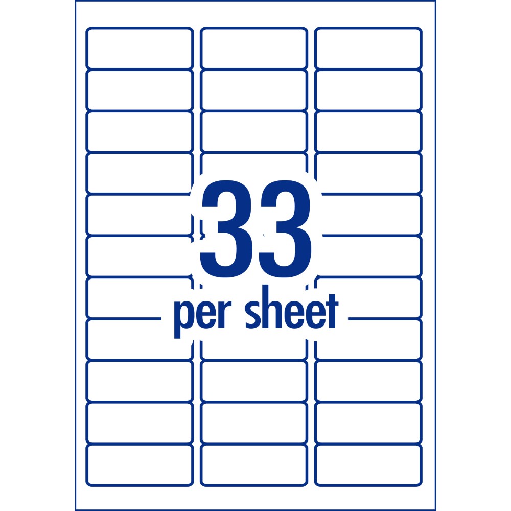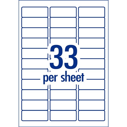 • Size: 64 x 24.3mm, 1650 labels, 50 sheets, 33 labels per sheet (33UP).