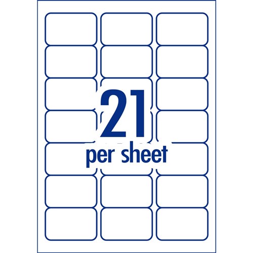 • Size: 63.5 x 38.1mm, 1050 labels, 50 sheets. 21 labels per sheet (21UP).