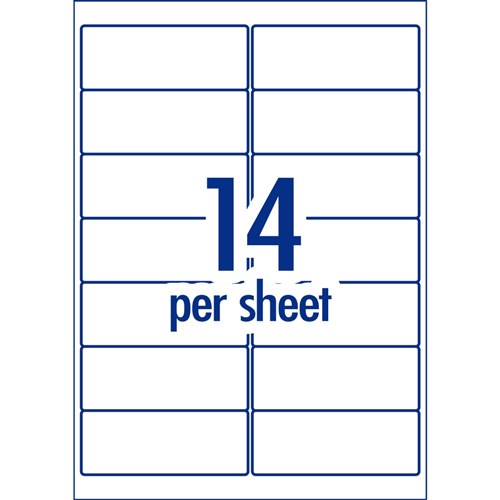 • Size: 99.1 x 38.1 mm, 50 sheets, 14 labels per sheet (14UP).