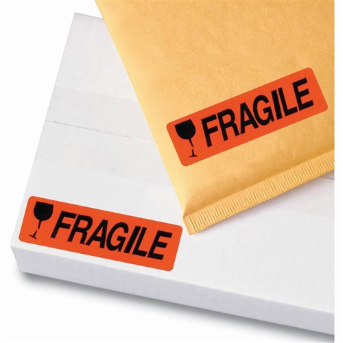 Avery Removable Dispenser Labels 19x64mm Fragile Black On Fluoro Red Pack Of 125
