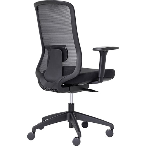 • Composition: Breathable mesh back and fabric upholstered seat.