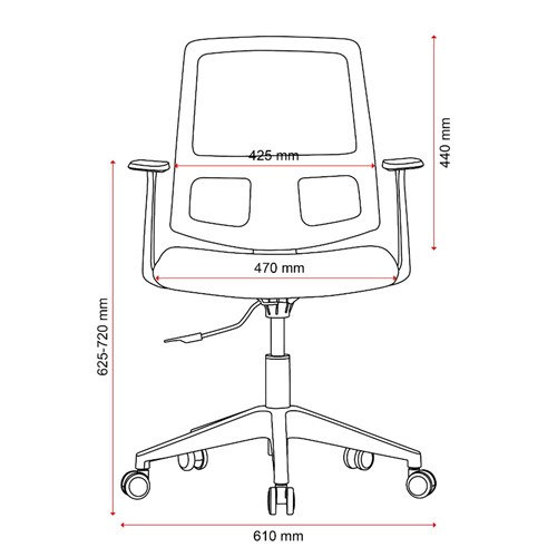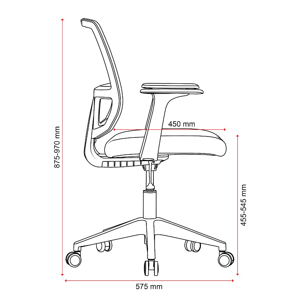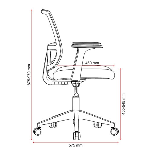 • Composition: Mesh back, upholstered seat and strong nylon 5 star base with 50mm nylon castors. Fixed armrests for extra ergonomic support.