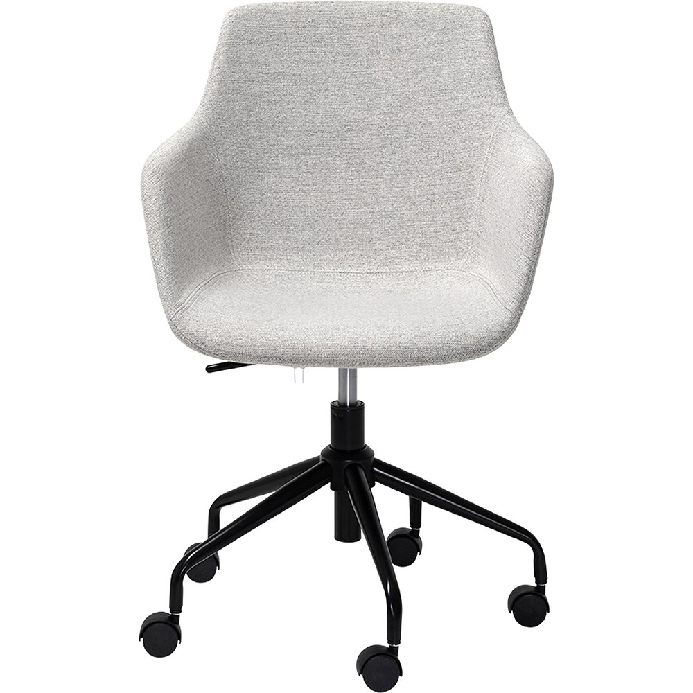 • Modern design with neutral grey fabric upholstery, 5-star powder-coated steel base.