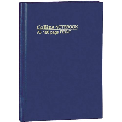 Collins No.5500 Notebook Hard Cover A5 Feint Ruled 168 Page Blue