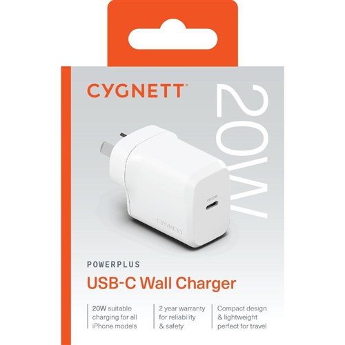 Cygnett PowerPlus 20W USB-C Fast Wall Charger White