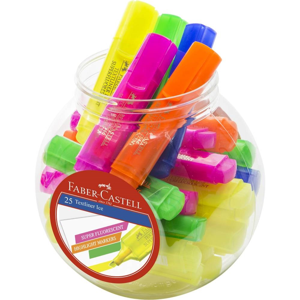 Faber-Castell Textliner 46 Highlighters Chisel 1-5mm Ice Assorted Colours Jar Of 25