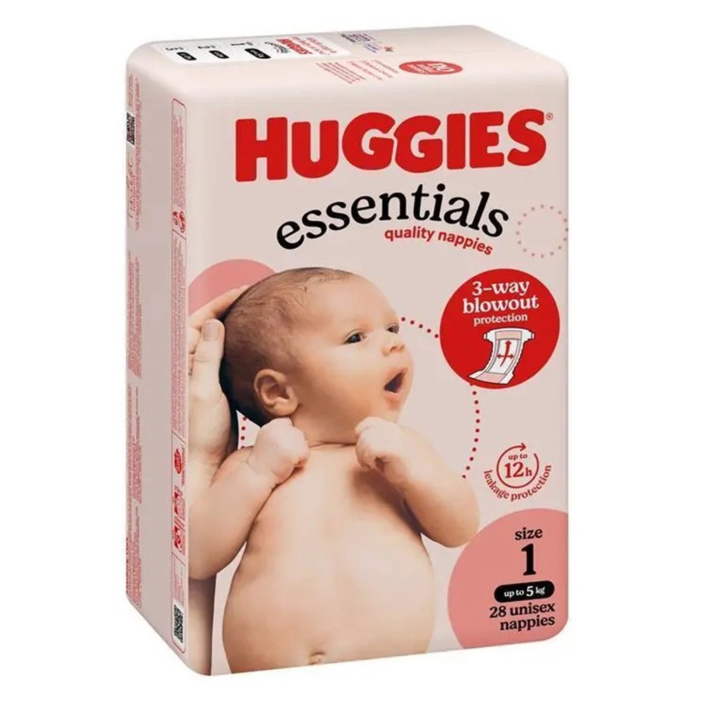 • Huggies ® Essentials Nappies with 3-way blowout protection and up to 12hr trusted absorbency for uninterrupted play.