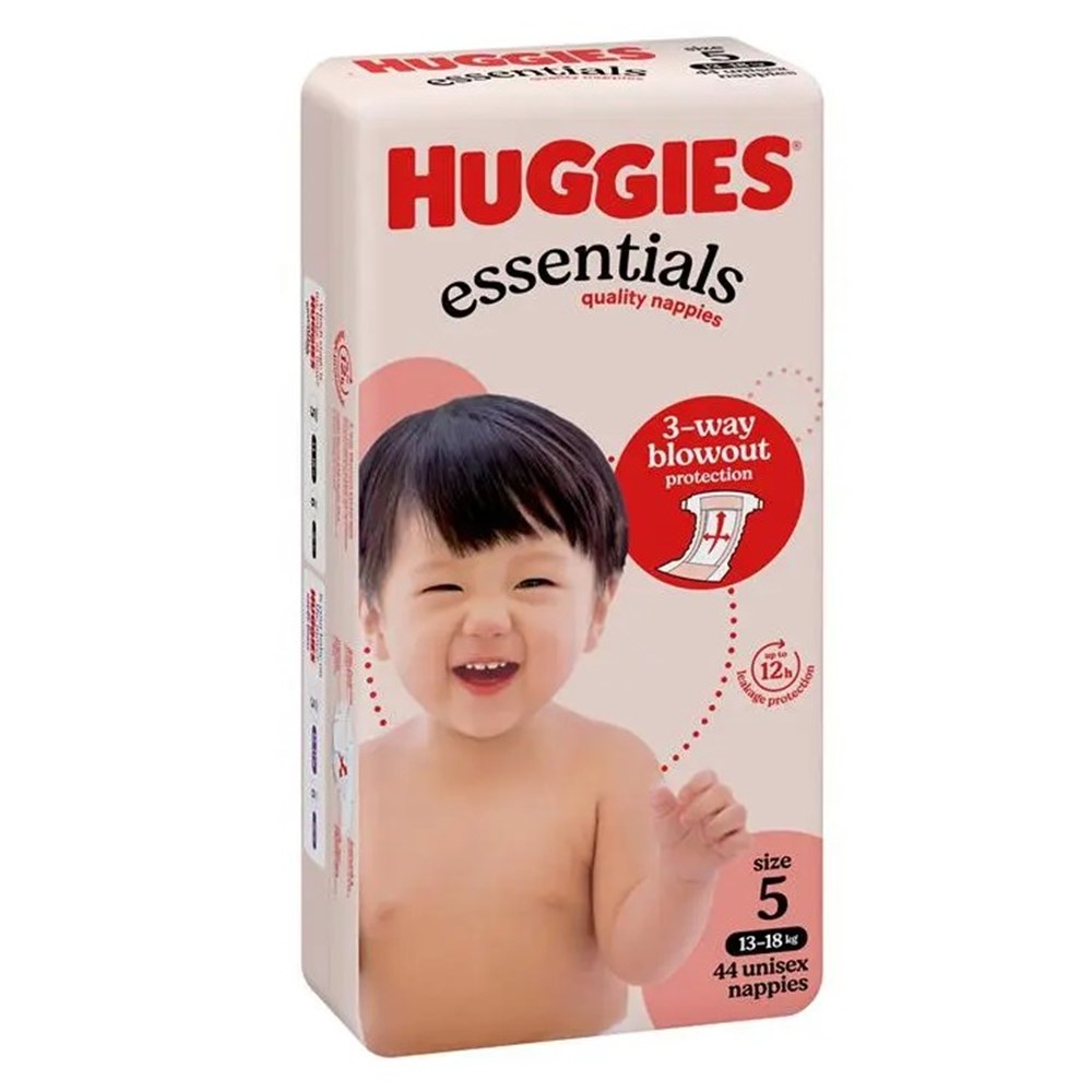 • Huggies ® Essentials Nappies with 3-way blowout protection and up to 12hr trusted absorbency for uninterrupted play.