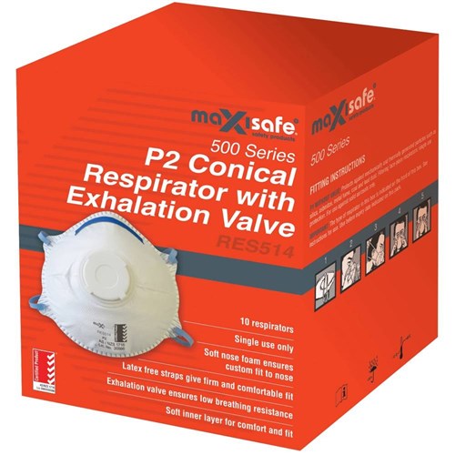 Maxisafe P2V Conical Respirator White Box of 10