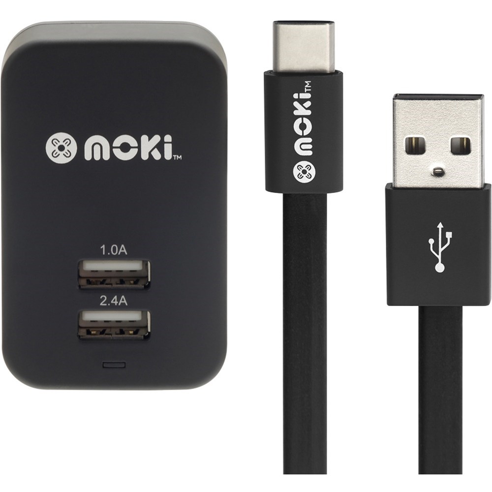 Moki Type-C SynCharge 150cm Cable + Wall Charger Black