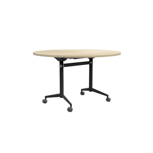 OLG Uni Round Flip Table 1200D x 720mmH New Oak Top Black Frame