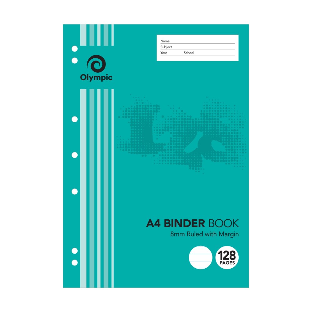 Olympic B812 Binder Book A4 7 Hole Punched 8mm Ruled With Margin 128 Page
