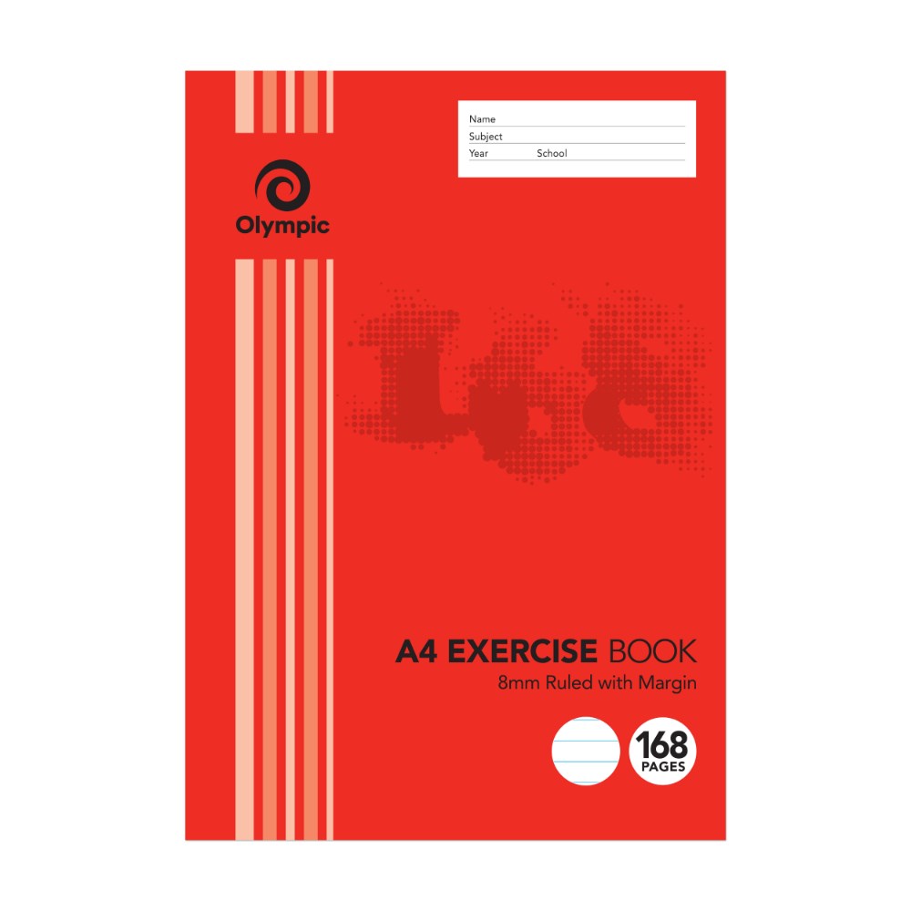 Olympic E816 Exercise Book A4 8mm Ruled With Red Margin 168 Page