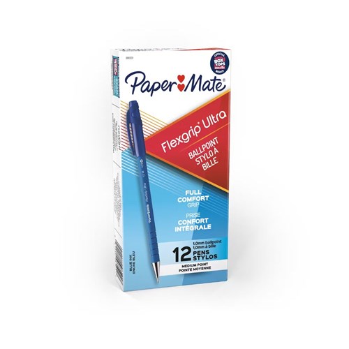 PaperMate FlexGrip Ultra Ballpoint Pens Medium 1.0mm Blue Box of 12