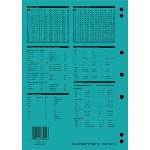 • 4 year calendar, activity page, maths tables & red margin.
