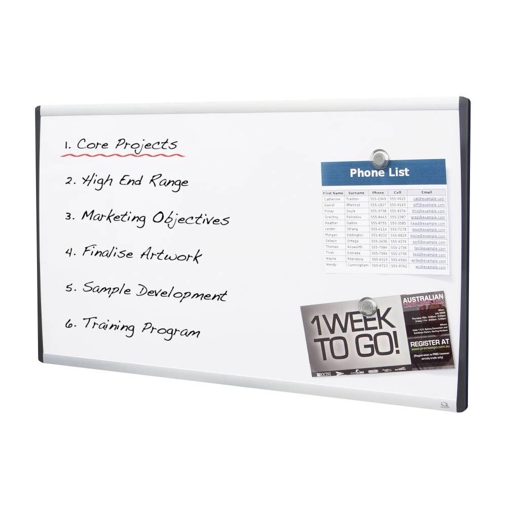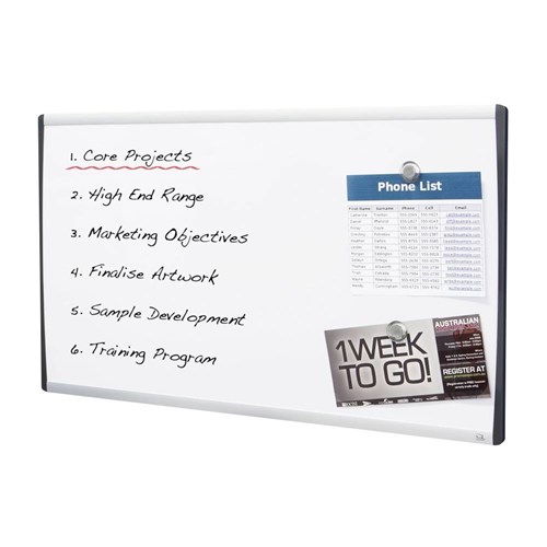 • The versatile whiteboard surface doubles as a magnetic board and features a lightweight aluminium frame.