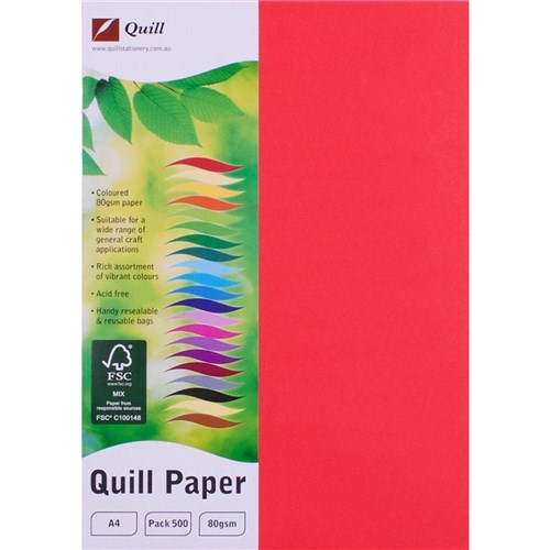 Quill Colour Copy Paper A4 80gsm Red Ream of 500