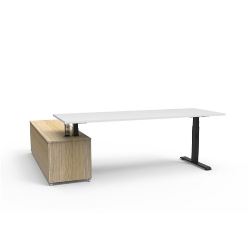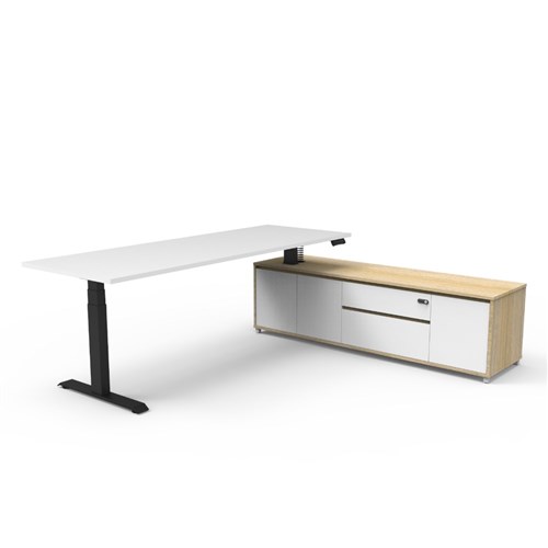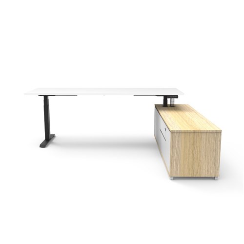 Rapidline Boost+ Executive Desk + RHS Cabinet 2270W x 1936D x 620-1270mmH White/Blk