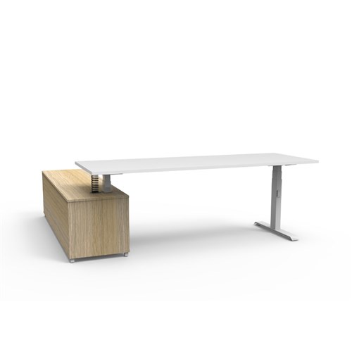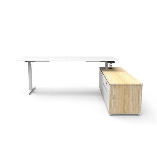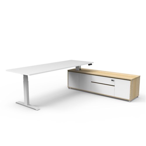 Rapidline Boost+ Executive Desk + RHS Cabinet 2270W x 1936D x 620-1270mmH White/Wht