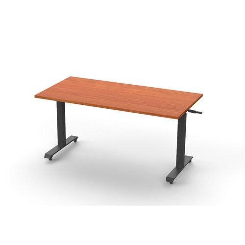 • Rapidline Boost manual crank height adjustable flip top table. Cherry top black frame.
