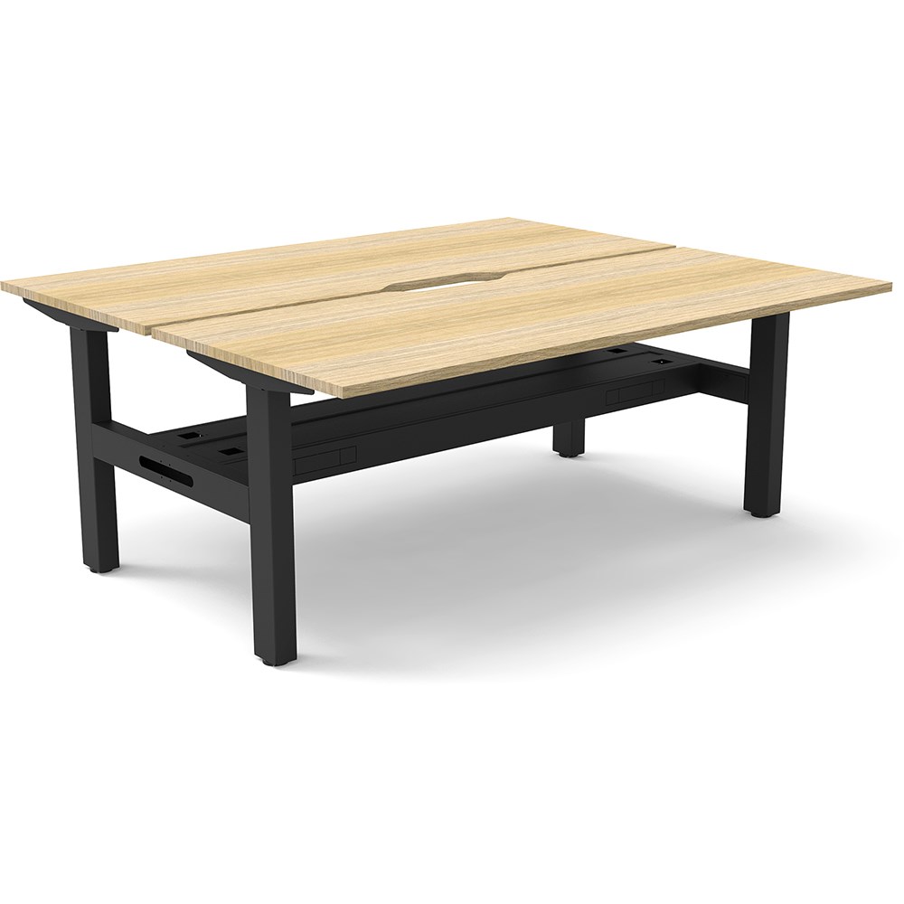 Rapidline Boost Static Back To Back Workstation+Tray 2 Person 1500Wx1500Dx730mmH Oak/Black