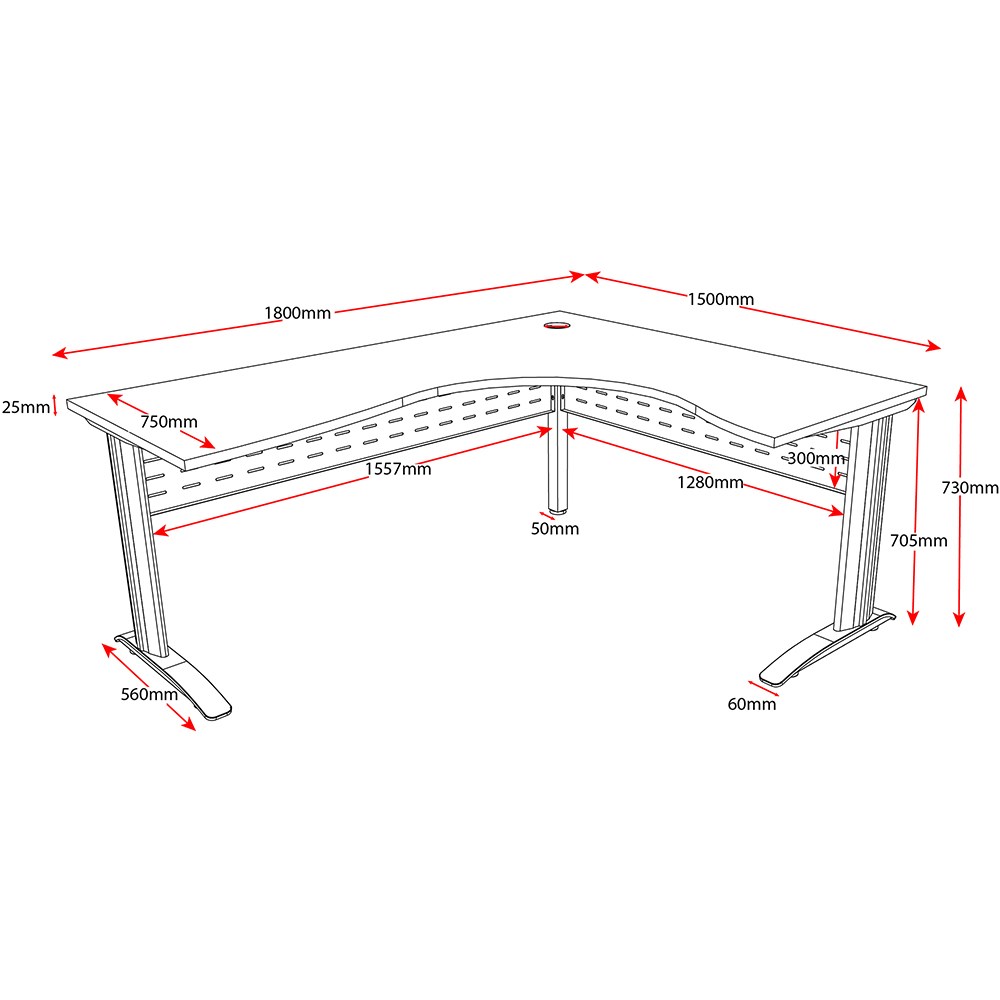 • 750mm deep top for more workspace.