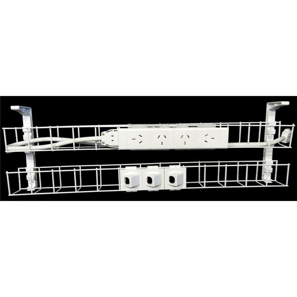 Rapidline Dual Tier Cable Basket Kit 1250mm 4GPO+3Data + 2m Interconnecting Lead White