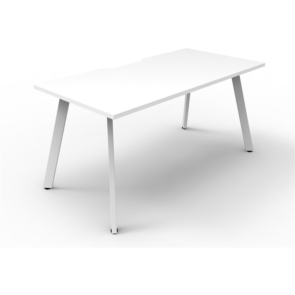 • Natural White worksurface with 410mm W x 50mm D with white frame. Scallop cable access.