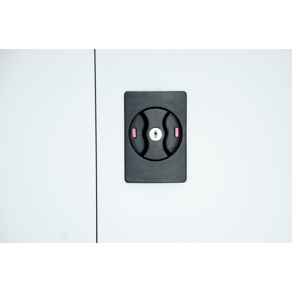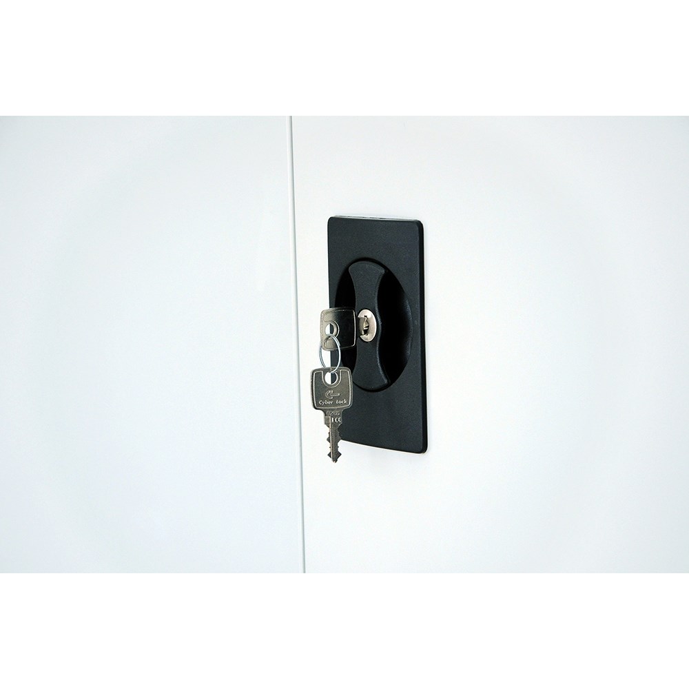 • GO swing door cupboards have a flush lock and adjustable shelves.