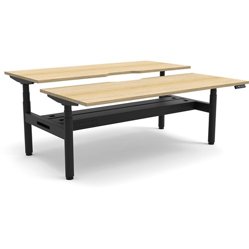 Rapidline Halo+ Back to Back Workstation + Cable Tray 2 Person 1800mmW Oak/Black