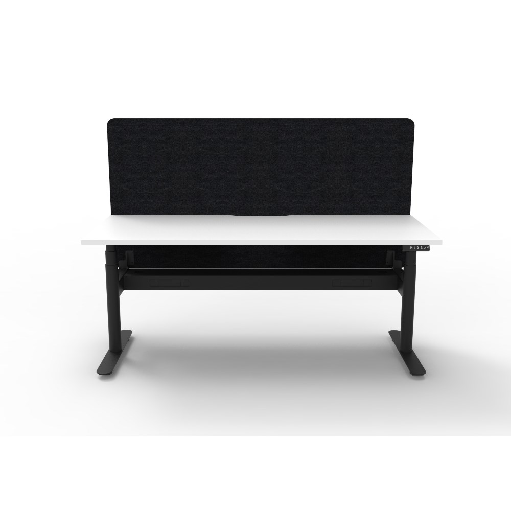 Rapidline Halo+ Single Sided Workstation + Black Eco Screen +Tray 1800Wx620-1270mmH Wht/Bl