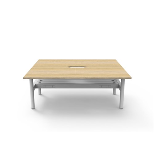 • Natural Oak top White Satin frame. Double sided workstation with cable tray.