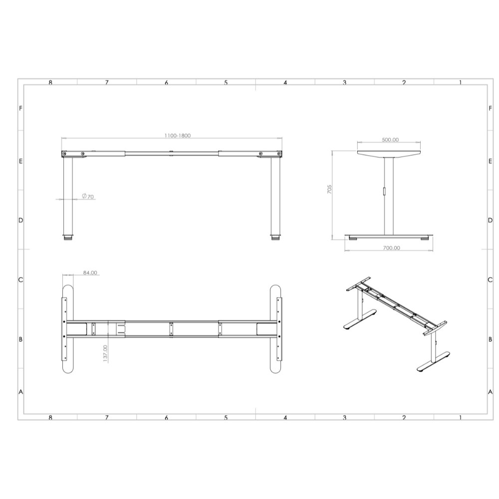 • Its telescopic design allows for width adjustments between 1100mm and 1800mm, ensuring flexibility and accommodating various workspace sizes.