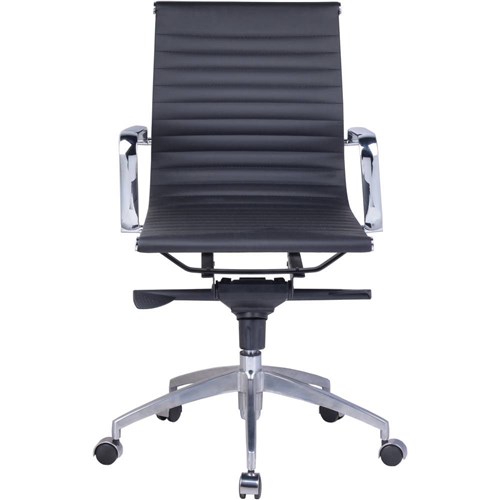 Rapidline PU605M Boardroom Chair Chrome Base And Arms Medium Back Black Ribbed PU