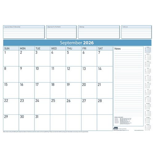• Tear-off desk refill calendar to keep track of appointments, meetings and other important events.