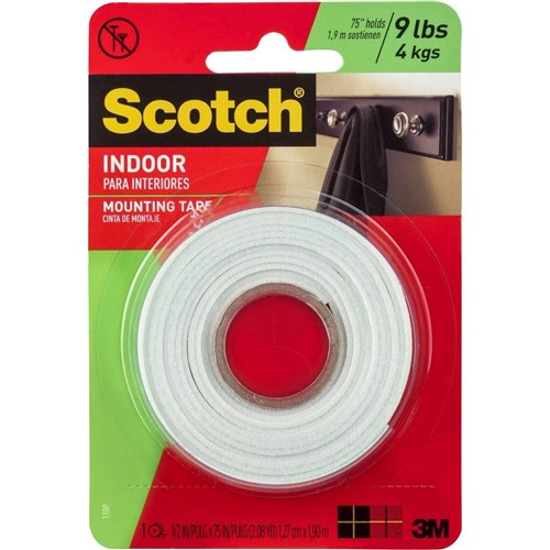 Scotch 110P Mounting Tape 1.3cmx1.9m Indoor Strip