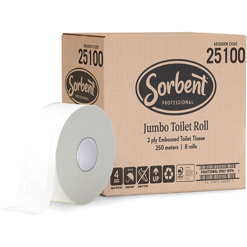 Sorbent Professional Jumbo Toilet Tissue Rolls 2 Ply 250m Carton Of 8
