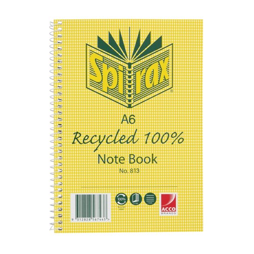 Spirax 813 Recycled 100% Notebook A6 Ruled 100 Pages Side Opening
