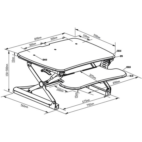Sylex Arise Deskalator Sit-Stand Riser 890W x 590D x 150-500mmH Black