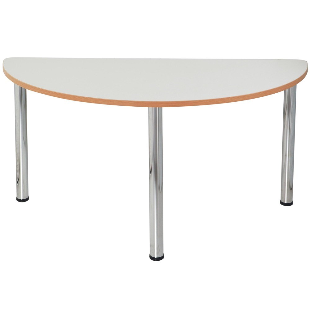 Sylex Quorum Geometry Meeting Table Half Round 1500W x 750D x 740mmH Chrome And Off White