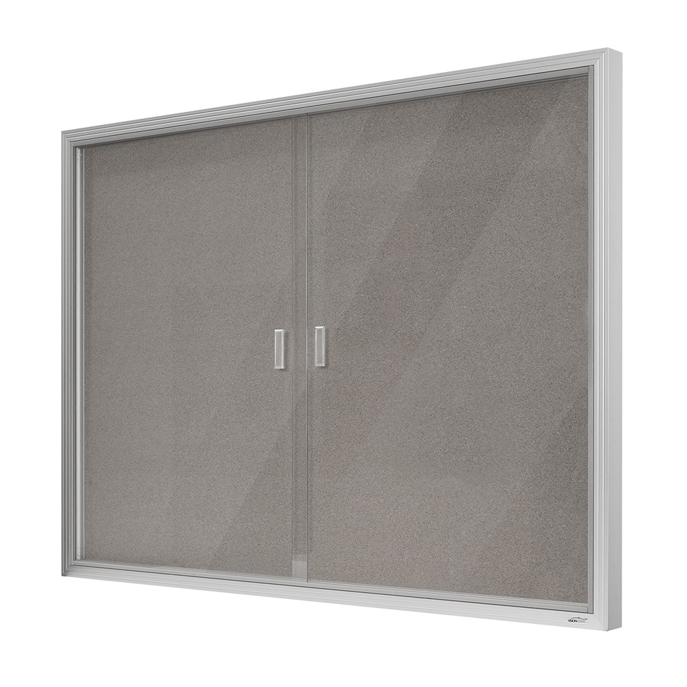 Visionchart Be Noticed Sliding 2 Door Notice Case 1800W x 48D x 1200mmH Silver/Grey Felt
