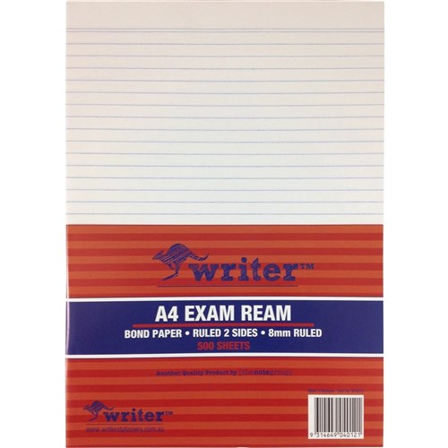 Writer A4 Exam Paper 55gsm Paper 8mm Ruled 500 Sheets