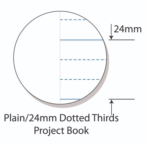 • Feature heavy duty covers, high quality white 70gsm paper with blue dotted thirds ruled lines and a red margin.